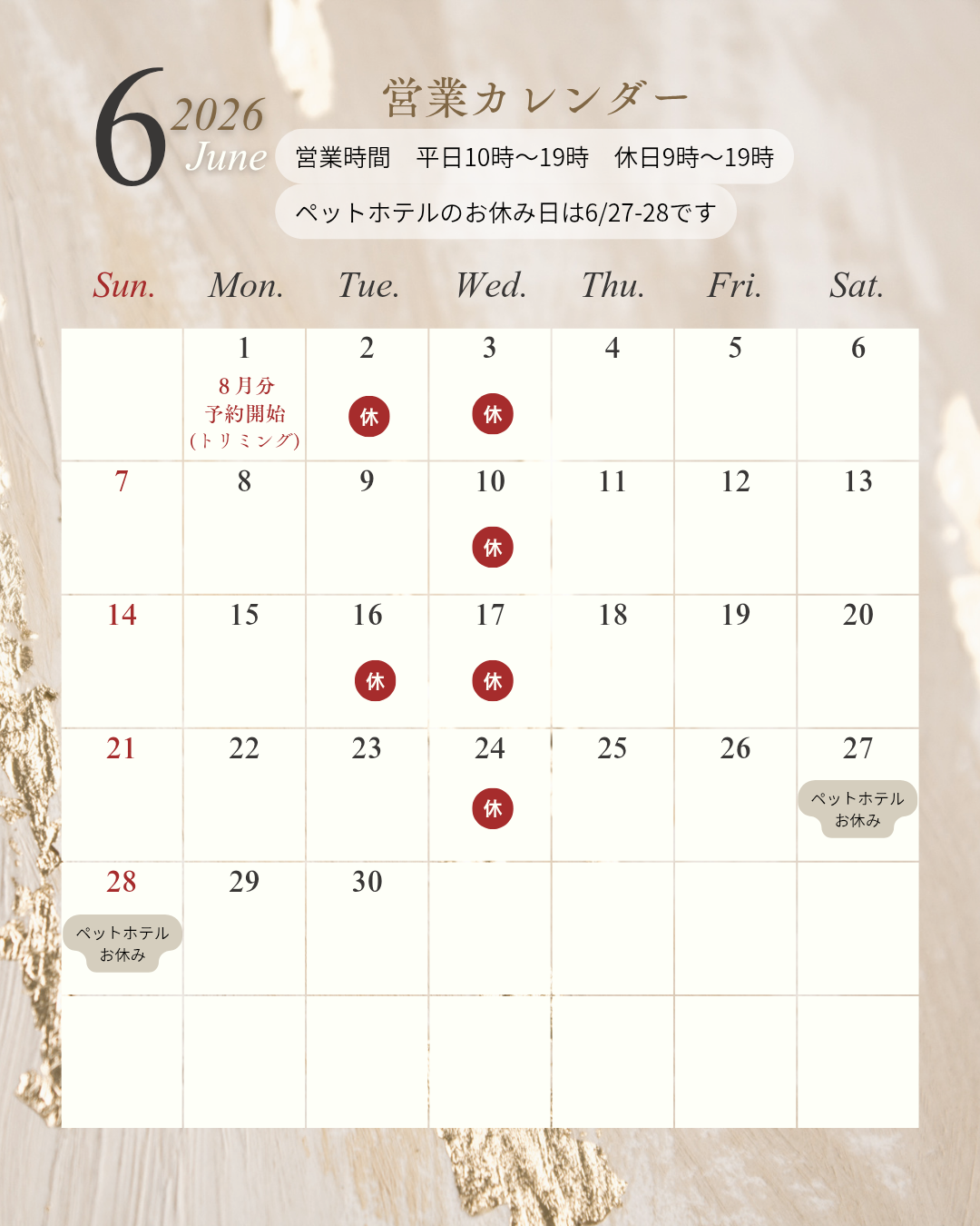 6月営業カレンダー