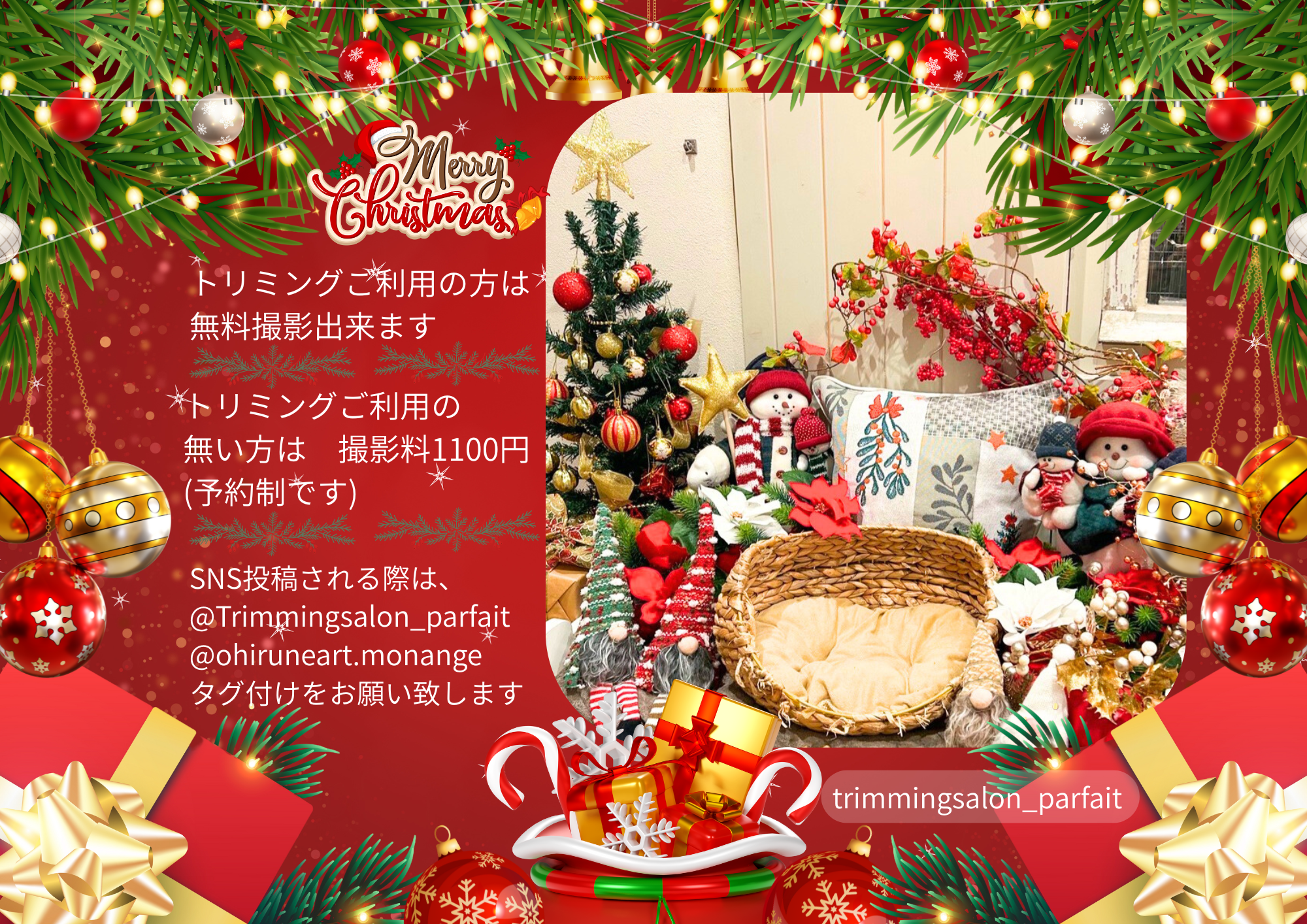 🎄トリミング利用がない方でもフォトスポット撮影のみのご予約もお受け出来ます。お客様ご自身でのカメラで、ご満足いくまで撮影してくださいね📷✨ (撮影料1100円)